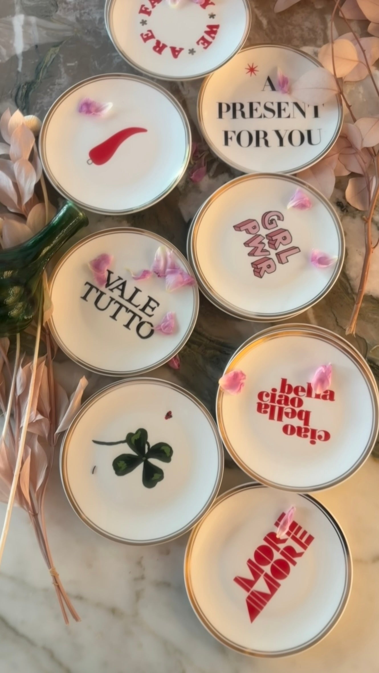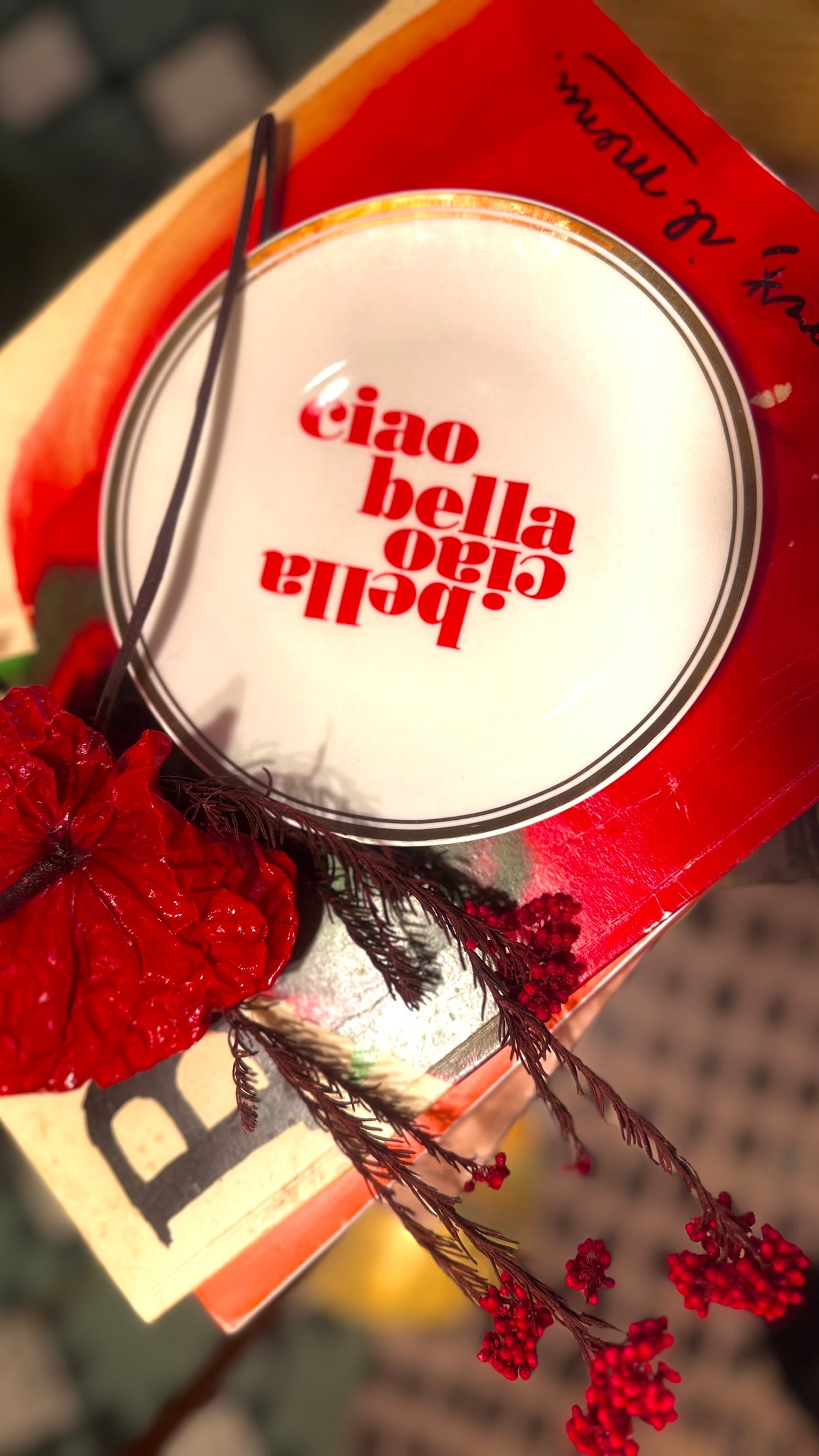 Un mix di ironia, energia e stile italiano in una collezione di piattini in ceramica decorati con frasi iconiche e simboli portafortuna.