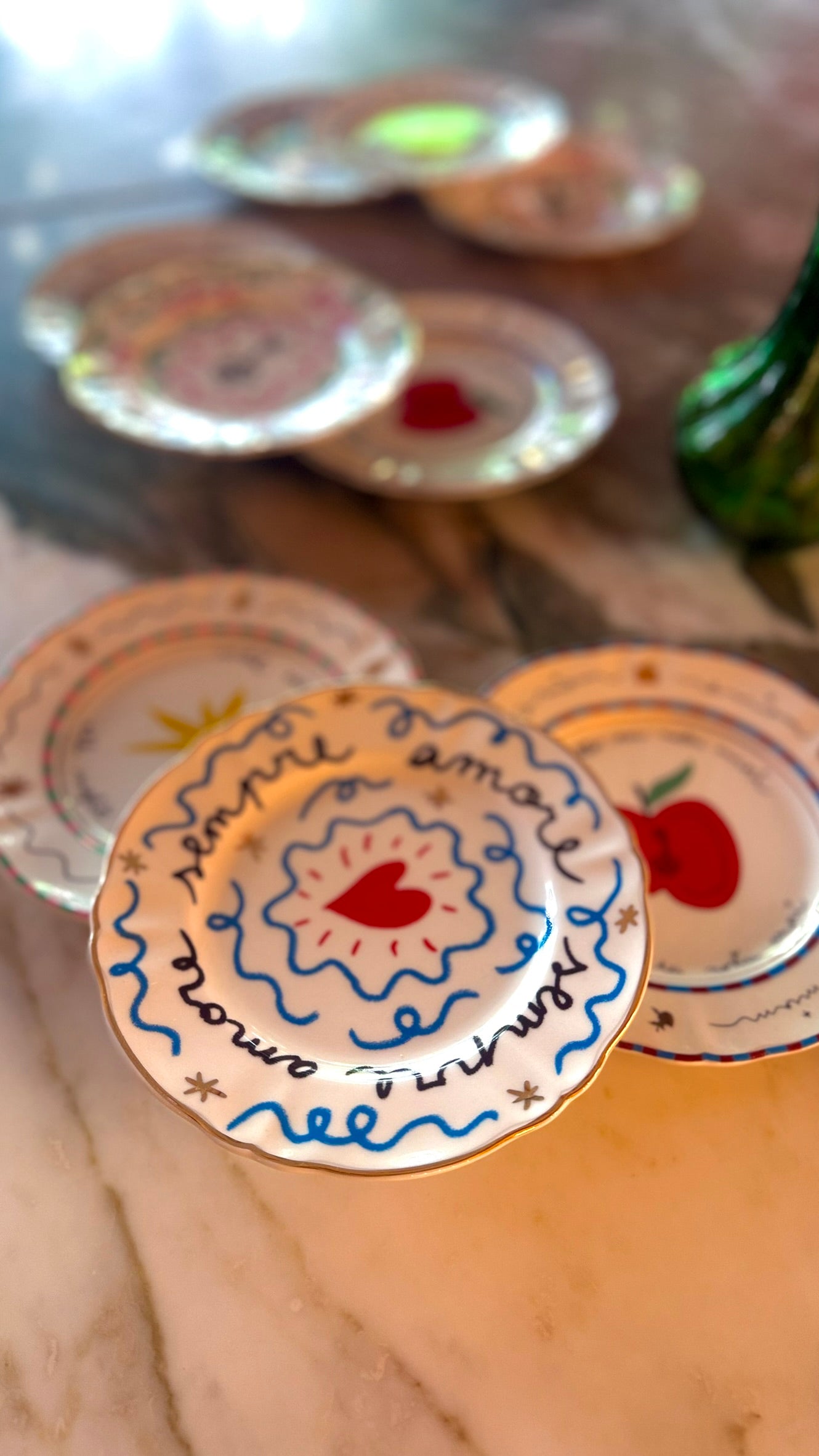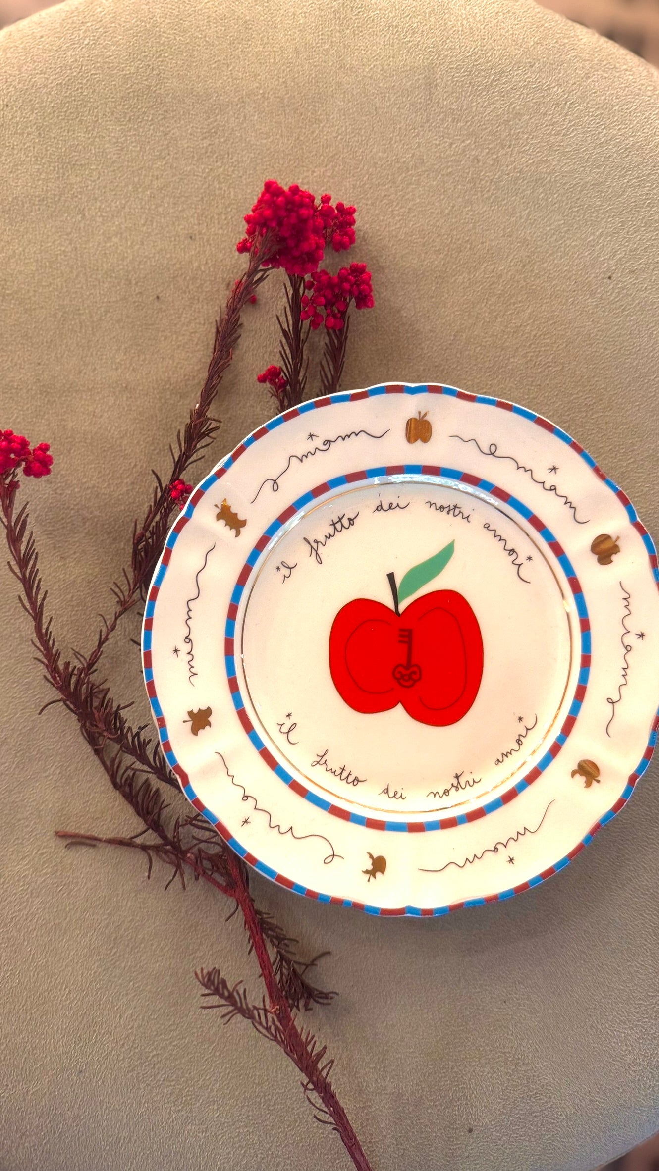 Un piatto che racconta una piccola storia d’amore… con una mela rossa e una frase dolce come una carezza: