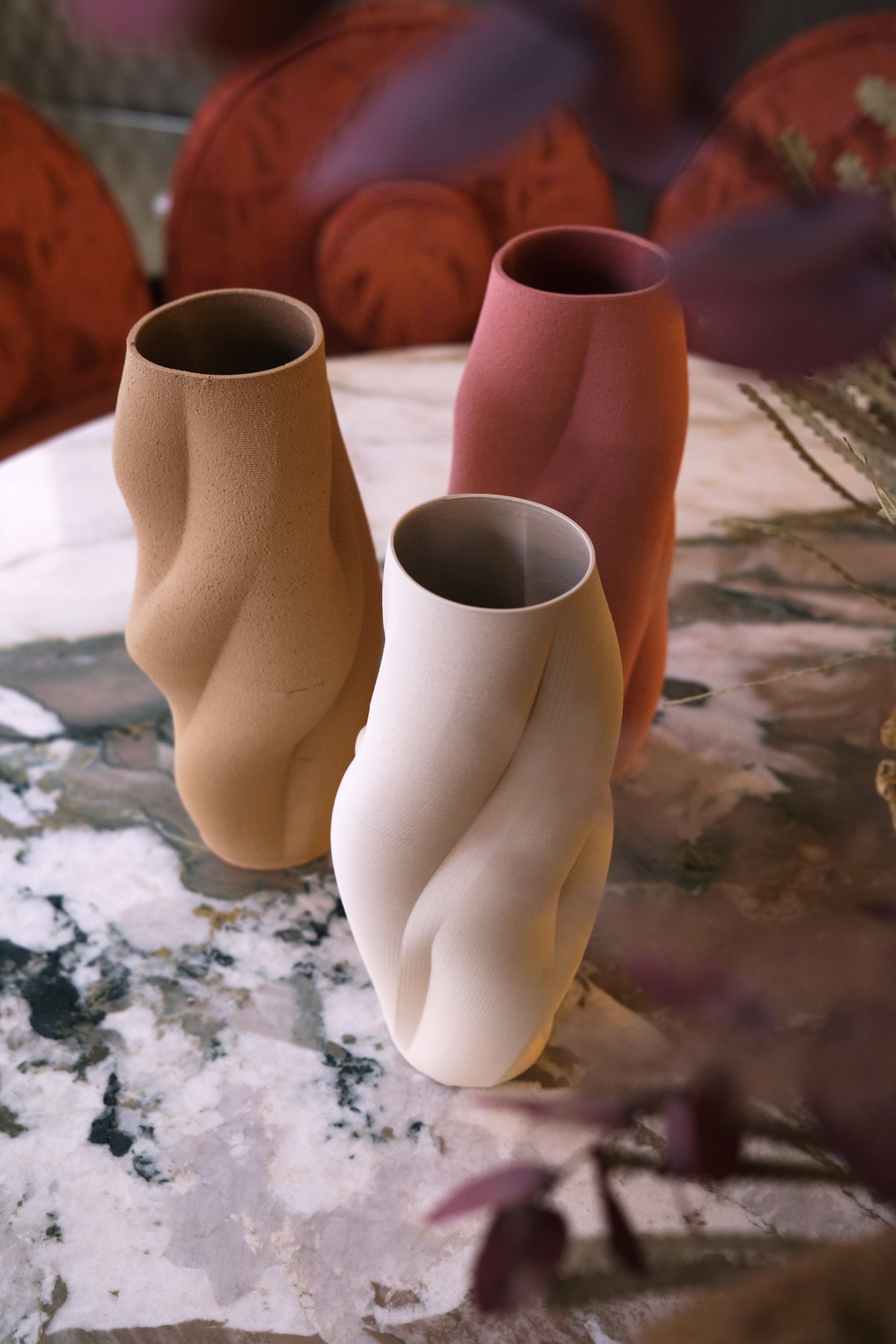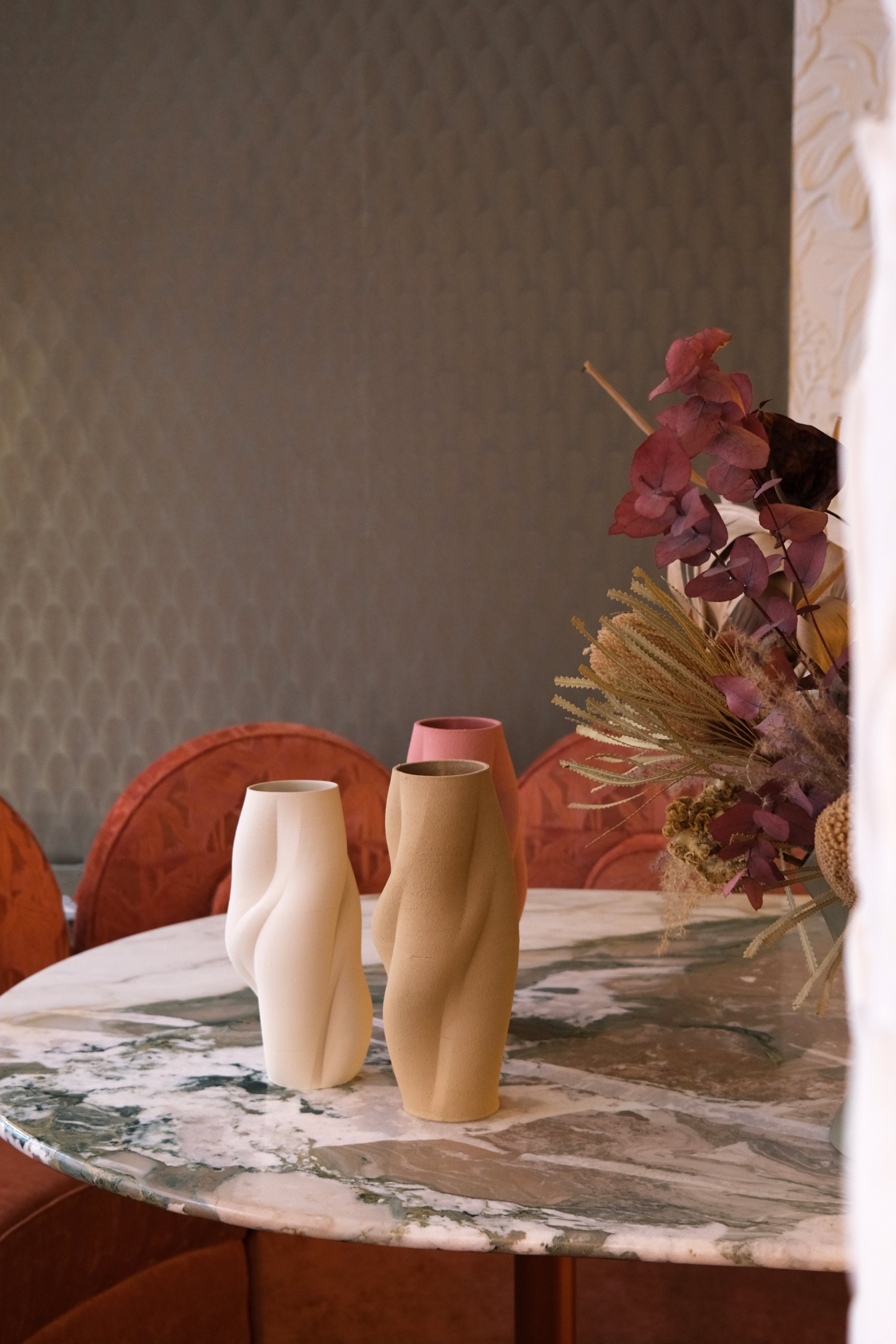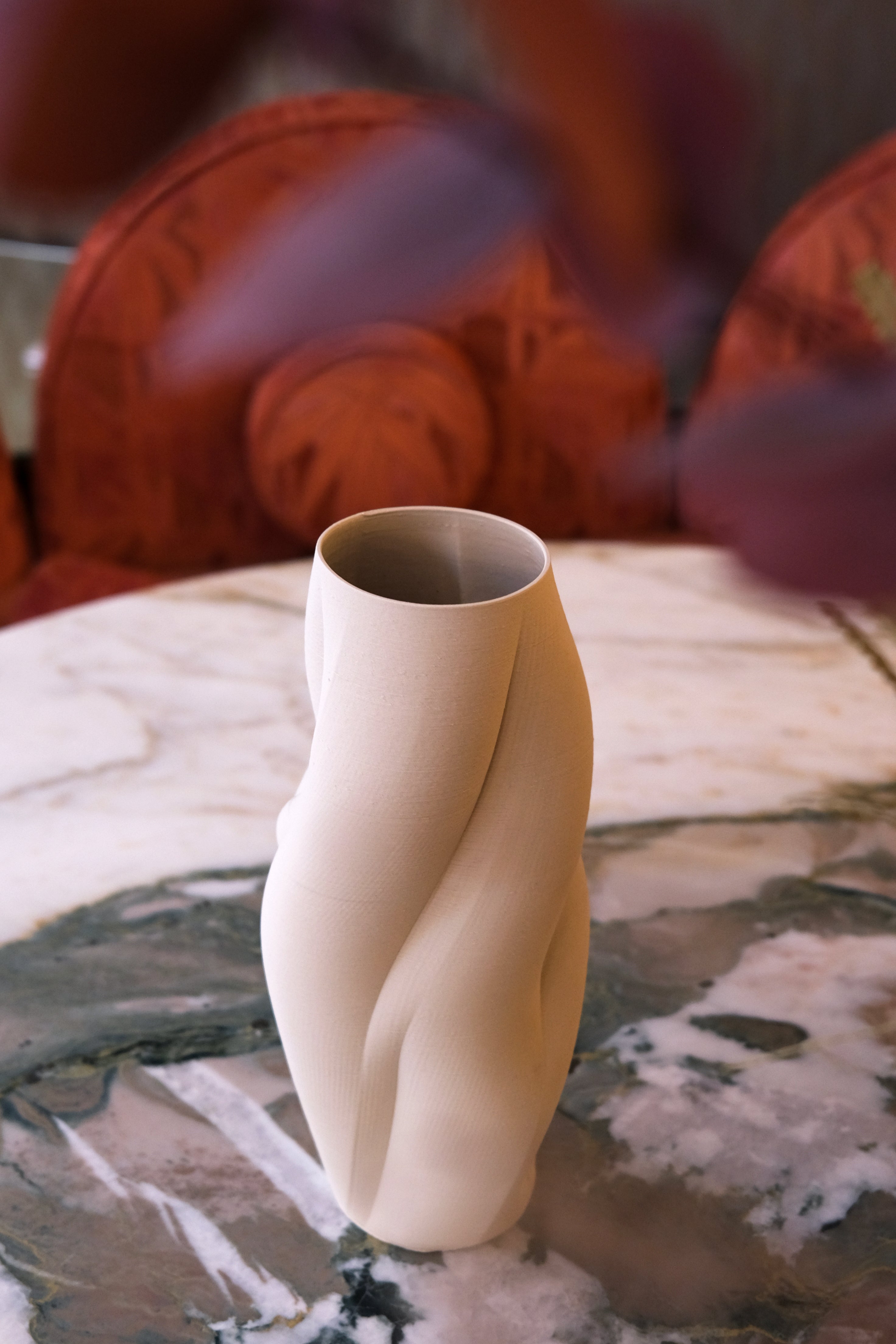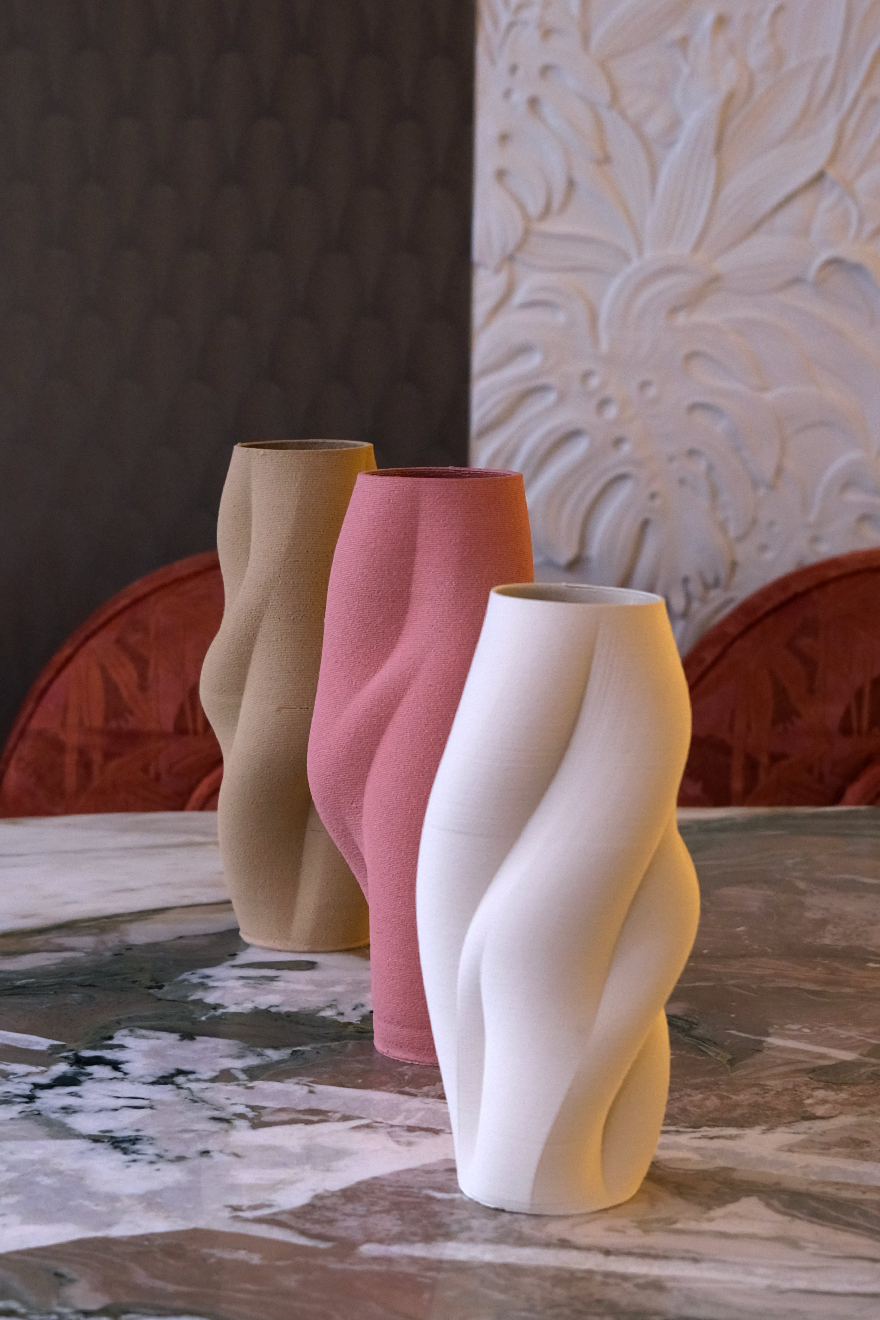 The sinuous curves of the vase echo those of a woman's legs, whose finesse captures the eye from any angle. Female also constantly changes its appearance based on its curves, depending on the perspective from which it is viewed.