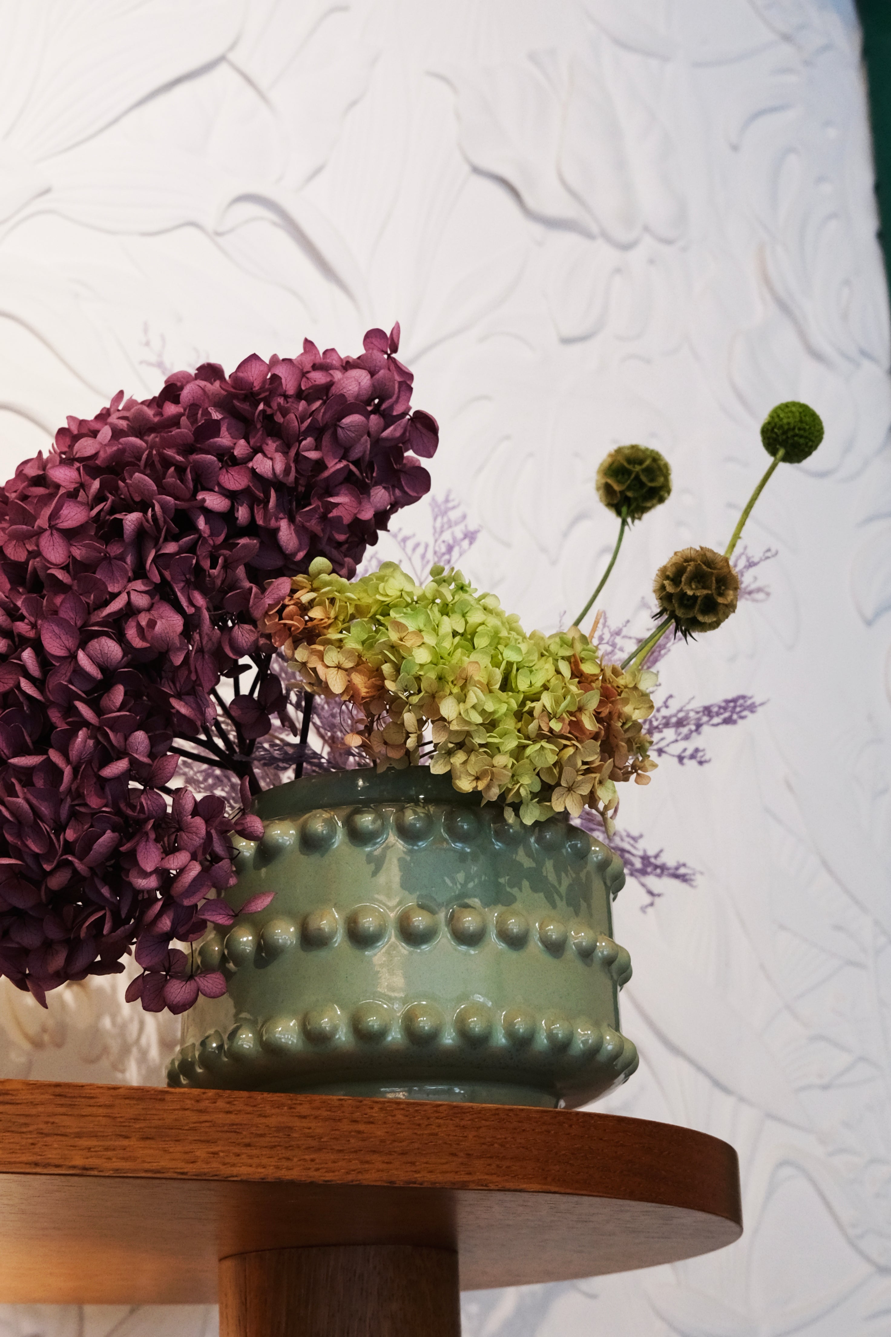 Il Centrotavola Ortensia Violet è realizzato con fiori stabilizzati di alta qualità, pensati per durare nel tempo e donare un tocco di eleganza alla tua casa.