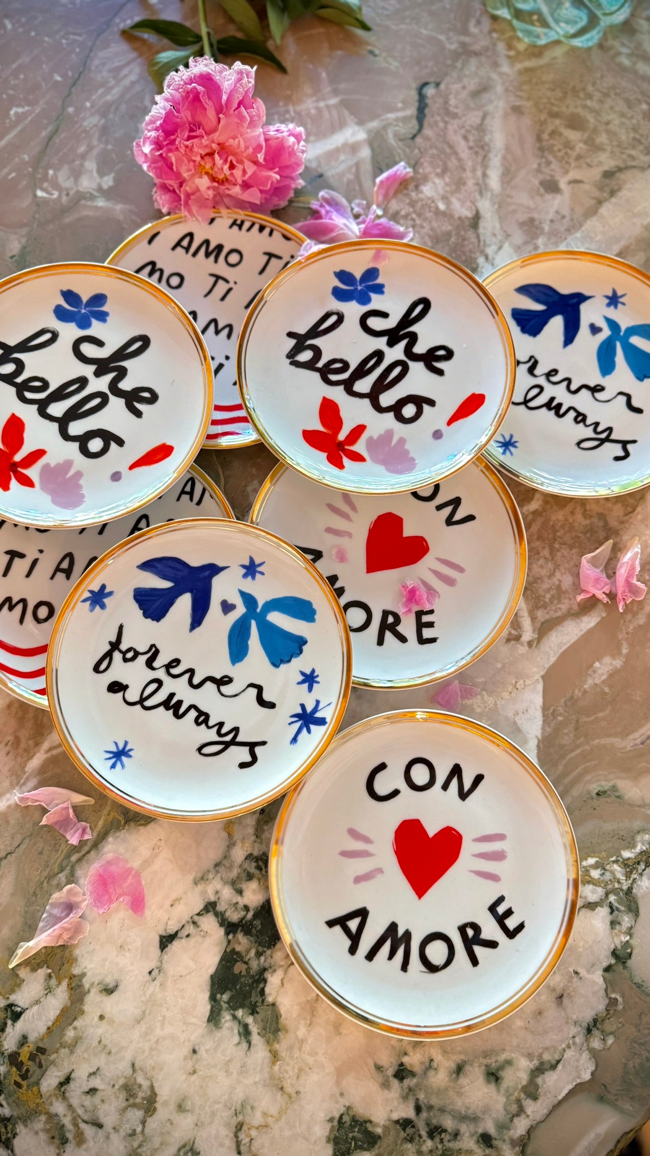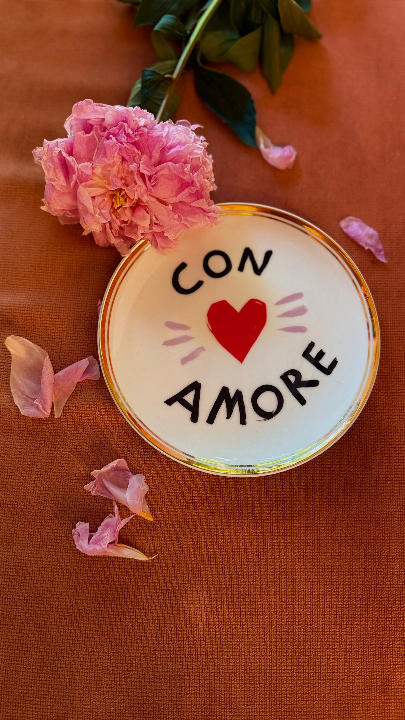 Decorato con un cuore rosso e la scritta “Con Amore”, è perfetto per portare un tocco affettuoso in tavola. Perfetto per dolci, antipasti o come piattino decorativo