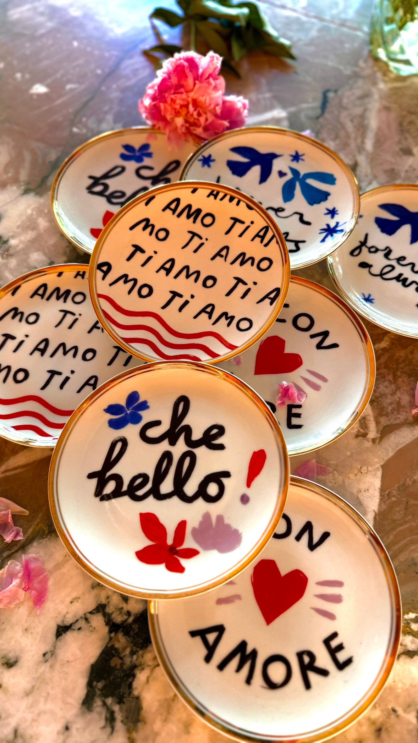 Decorato a mano con onde rosse e lettere imperfette, proprio come l’amore vero.