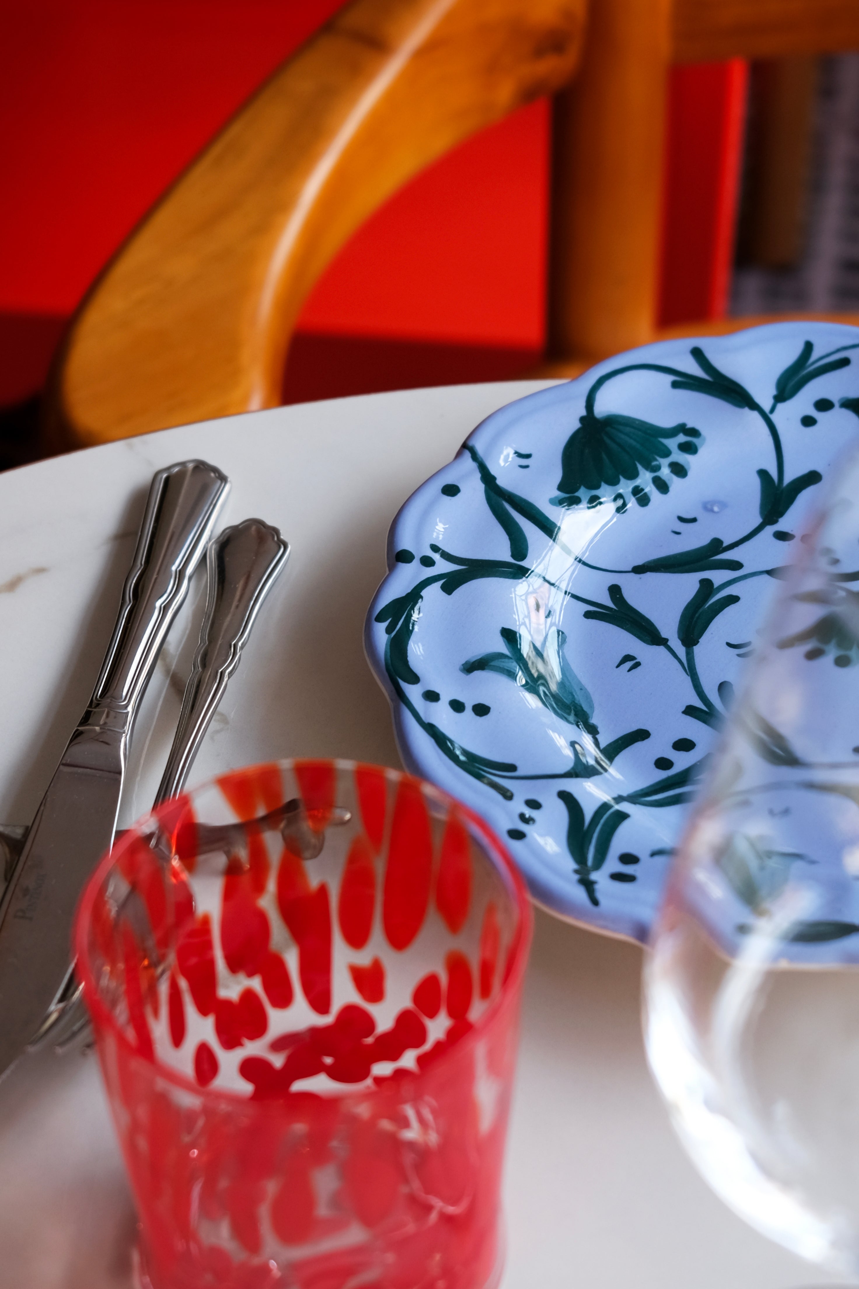 Vaisselle è un brand contemporaneo creato da Léa Zana, una designer di moda che ha trasformato la sua passione per lo stile vintage ed eclettico in una linea di stoviglie. Ogni pezzo è progettato da Léa a Londra e realizzato a mano in Spagna da una coppia di artigiani locali, usando argilla bianca locale, vernici senza piombo e tecniche tradizionali.
