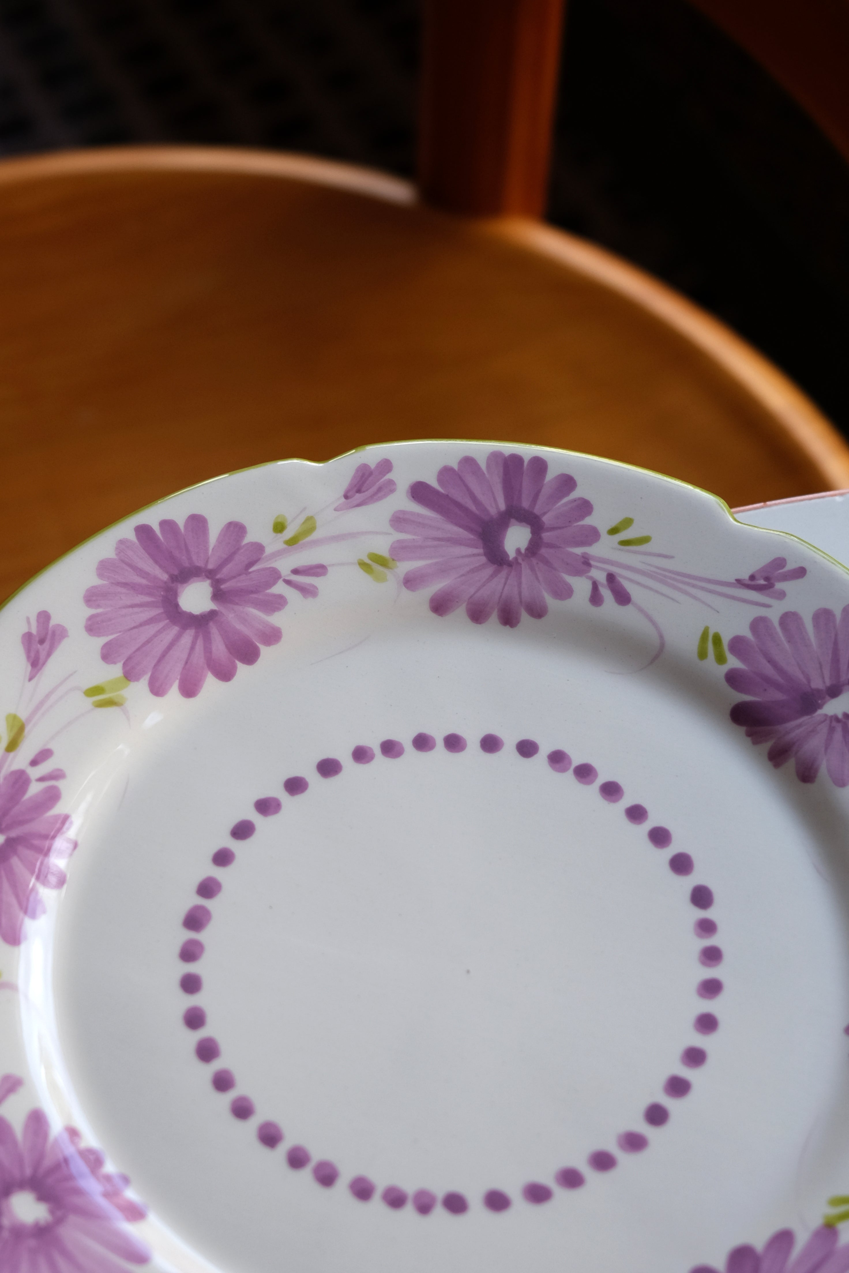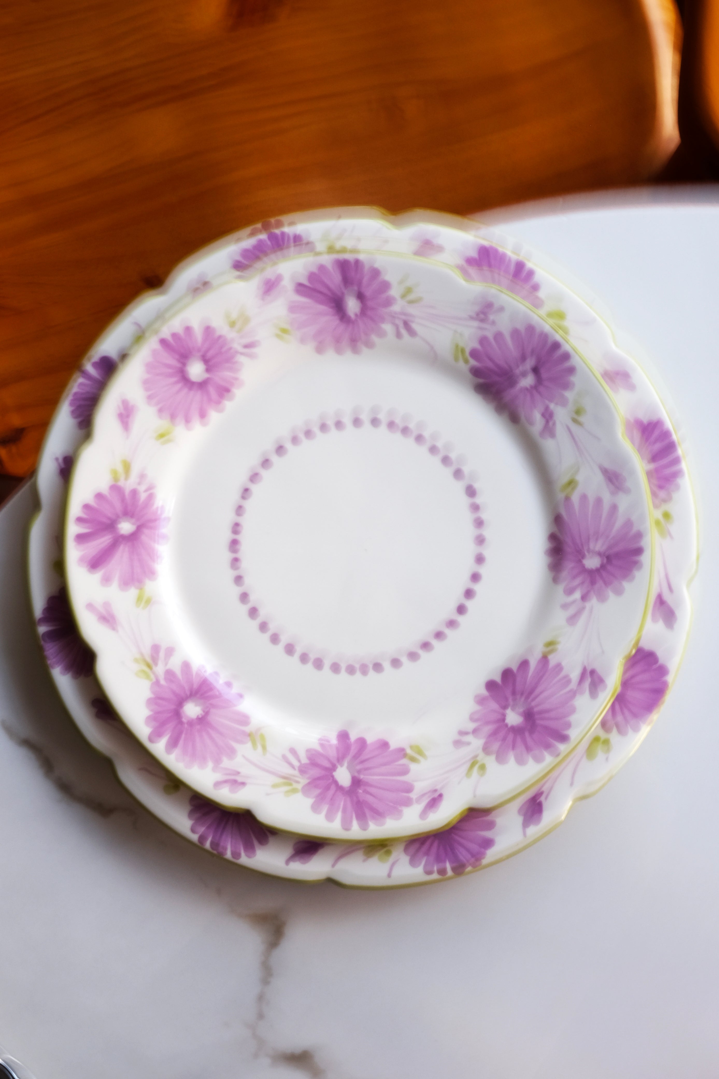 Piatto da portata dipinto a mano, adornato con una delicata decorazione floreale in verde acqua e rosa e bordi smerlati. Ogni piatto è un'opera d'arte unica che porta un tocco di eleganza e raffinatezza alla tua tavola. Perfetti per aggiungere un tocco di lusso a ogni pasto.
